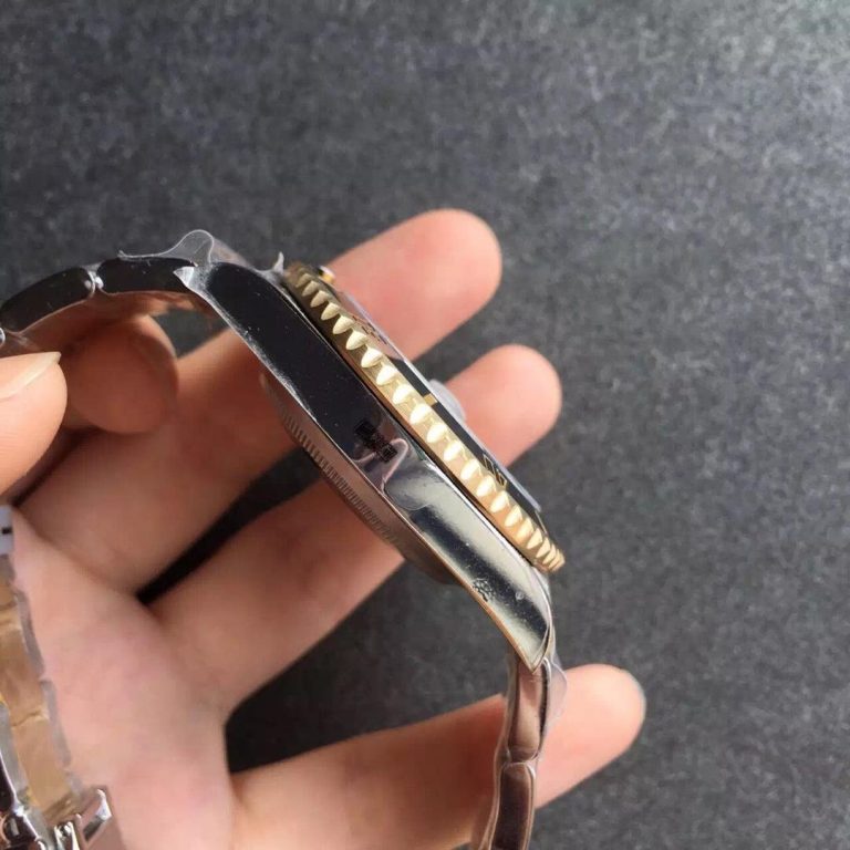 - 18Kラップゴールド版: 金メッキの4倍以上の厚みを持つ純金を巻き付けており、美しいゴールドカラーが色褪せたり剥がれたりすることはほぼありません。価格は高くなりますが、一生モノのサブマリーナ レプリカをお探しなら、間違いなくこちらのラップゴールド版を強くお勧めします。